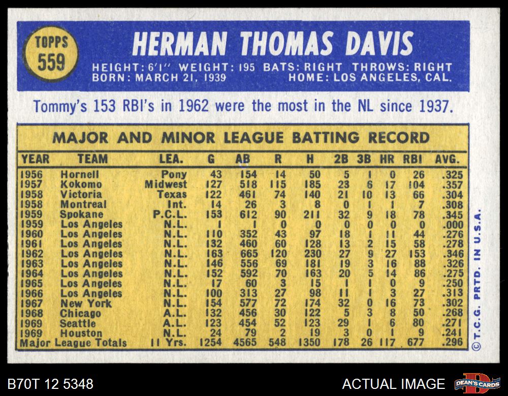 1970 Topps #559 Tommy Davis 8 - NM/MT