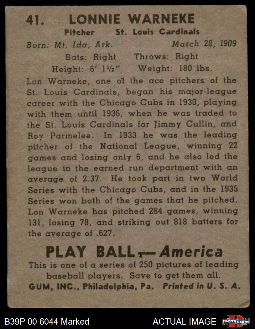 1939 Play Ball #41 Lonnie Warneke