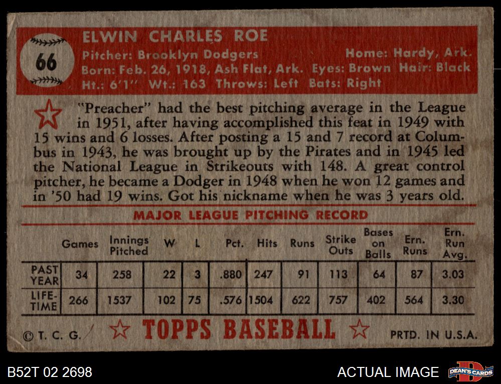1952 Topps #66 Preacher Roe 2 - GOOD