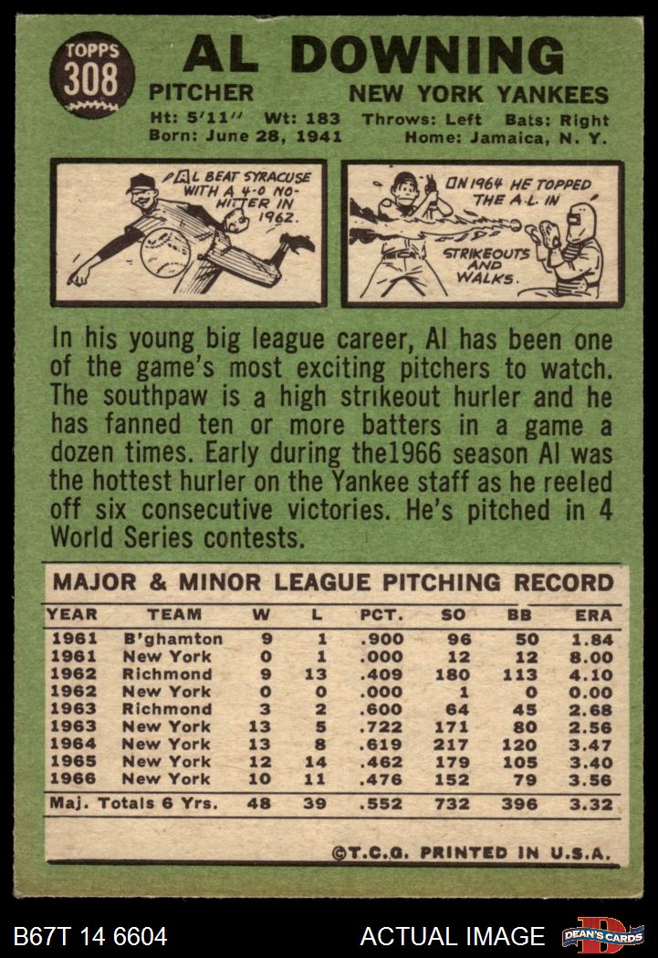 1967 Topps #308 Al Downing