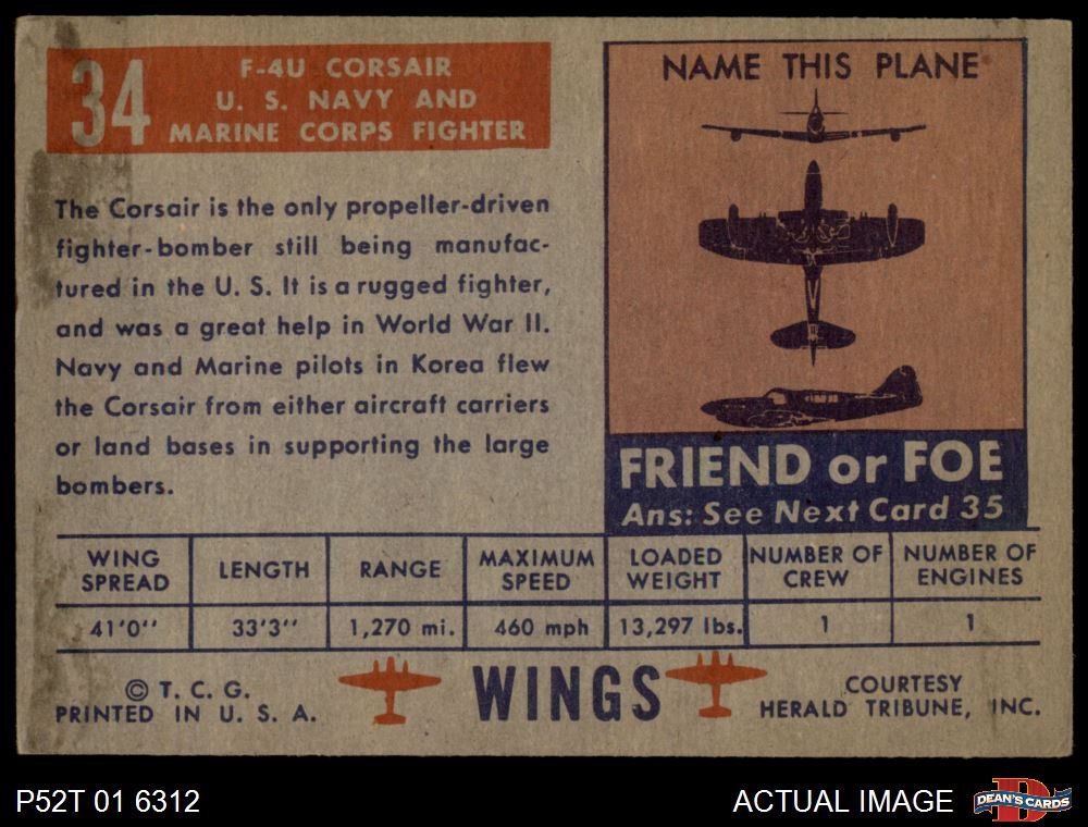 1952 Topps Wings #34 F4U Corsair 4 - VG/EX