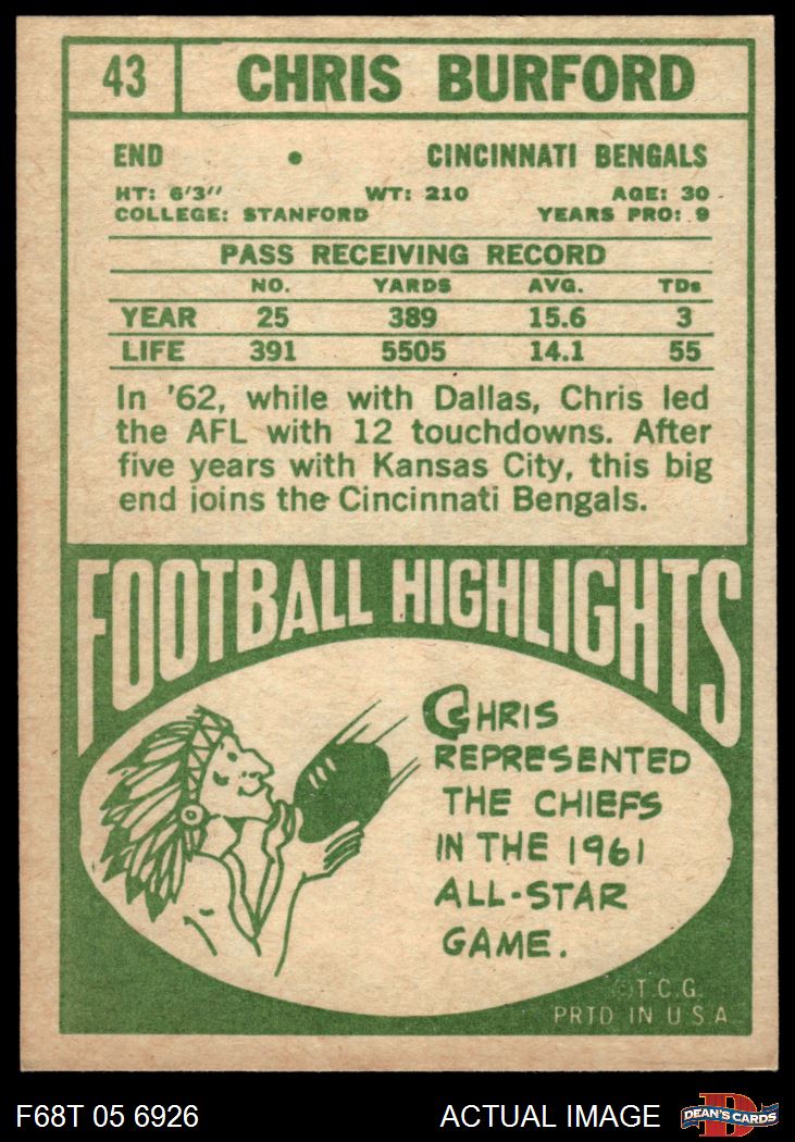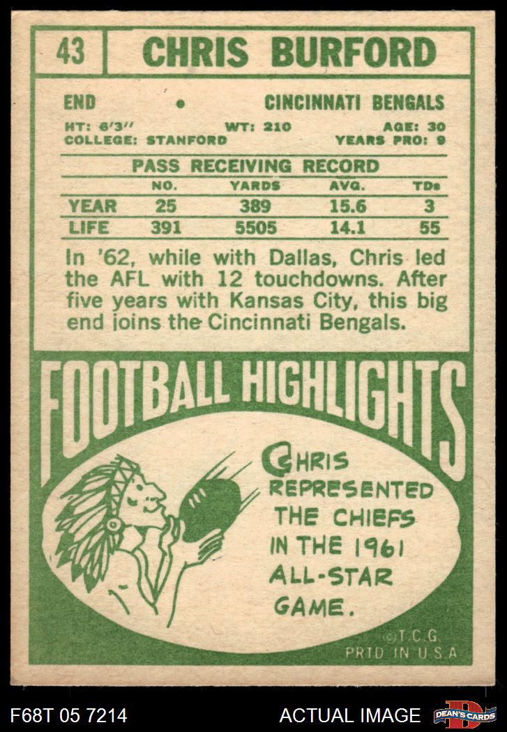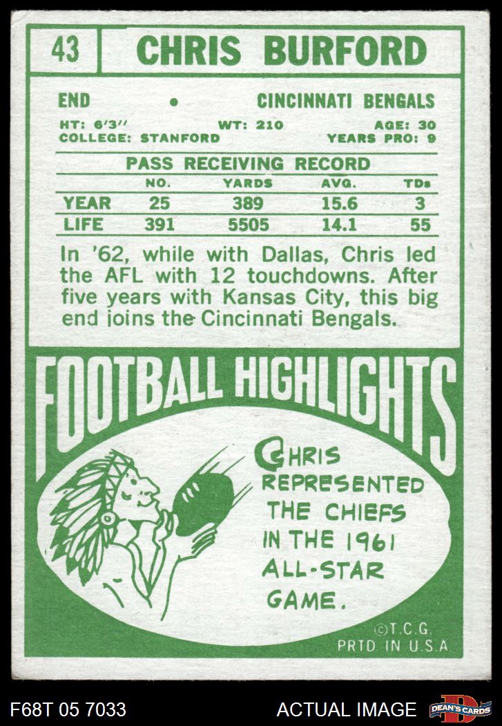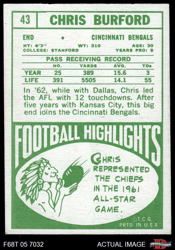 1968 Topps Football Cards (2,589 available)1968 Topps Bengals (100 available)