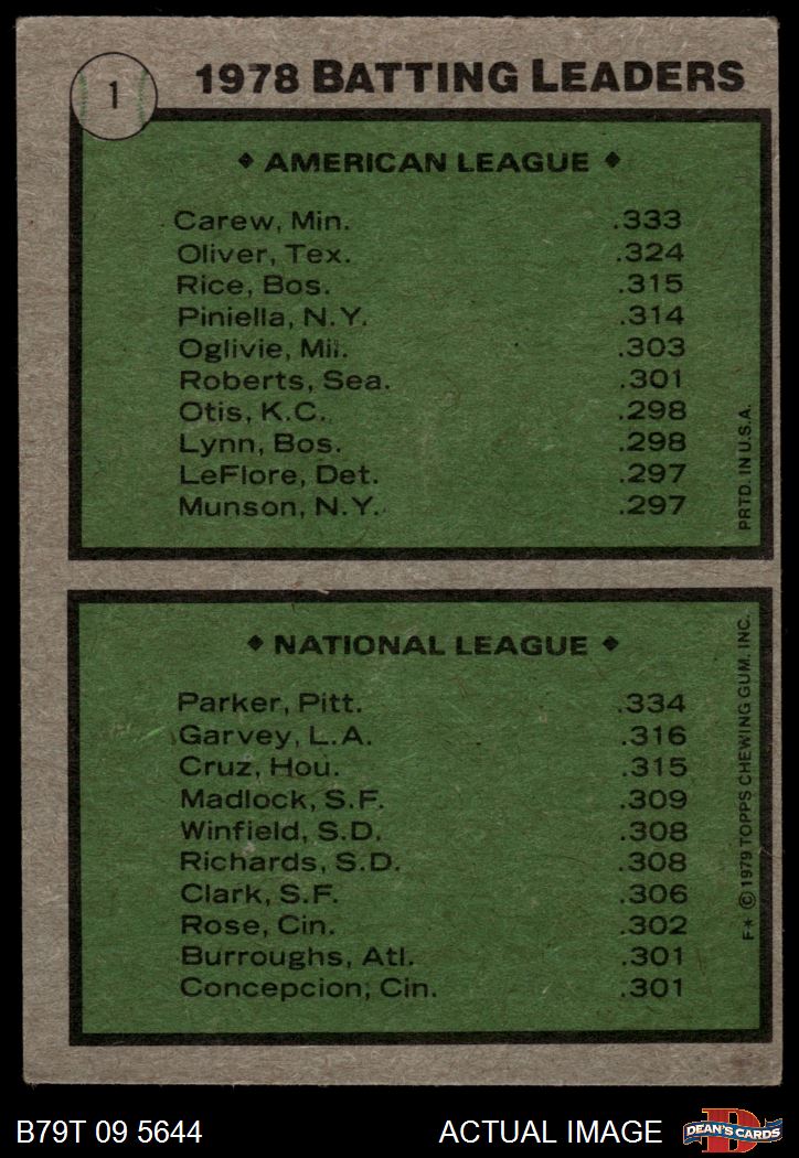 1979 Topps #1 - Rod Carew / Dave Parker Batting Leaders 1 - POOR