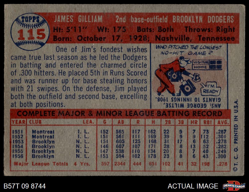 1957 Topps #115 Jim Gilliam