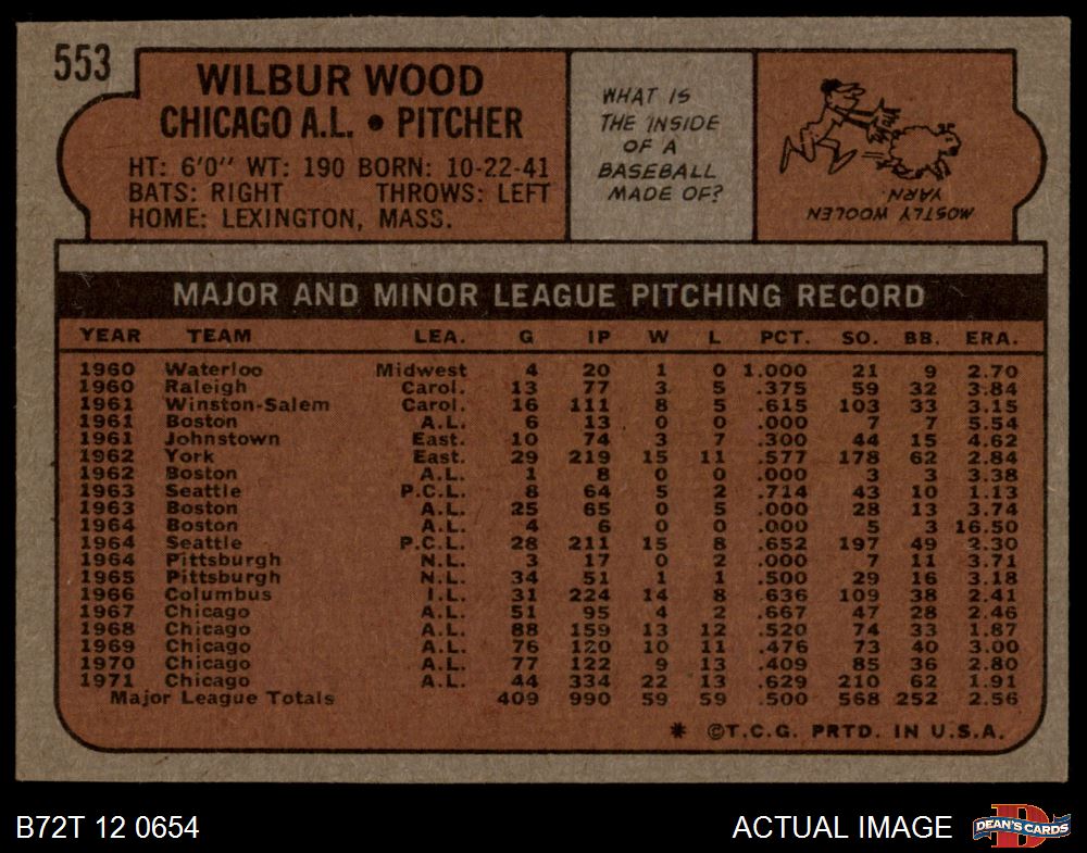 1972 Topps #553 Wilbur Wood 4 - VG/EX