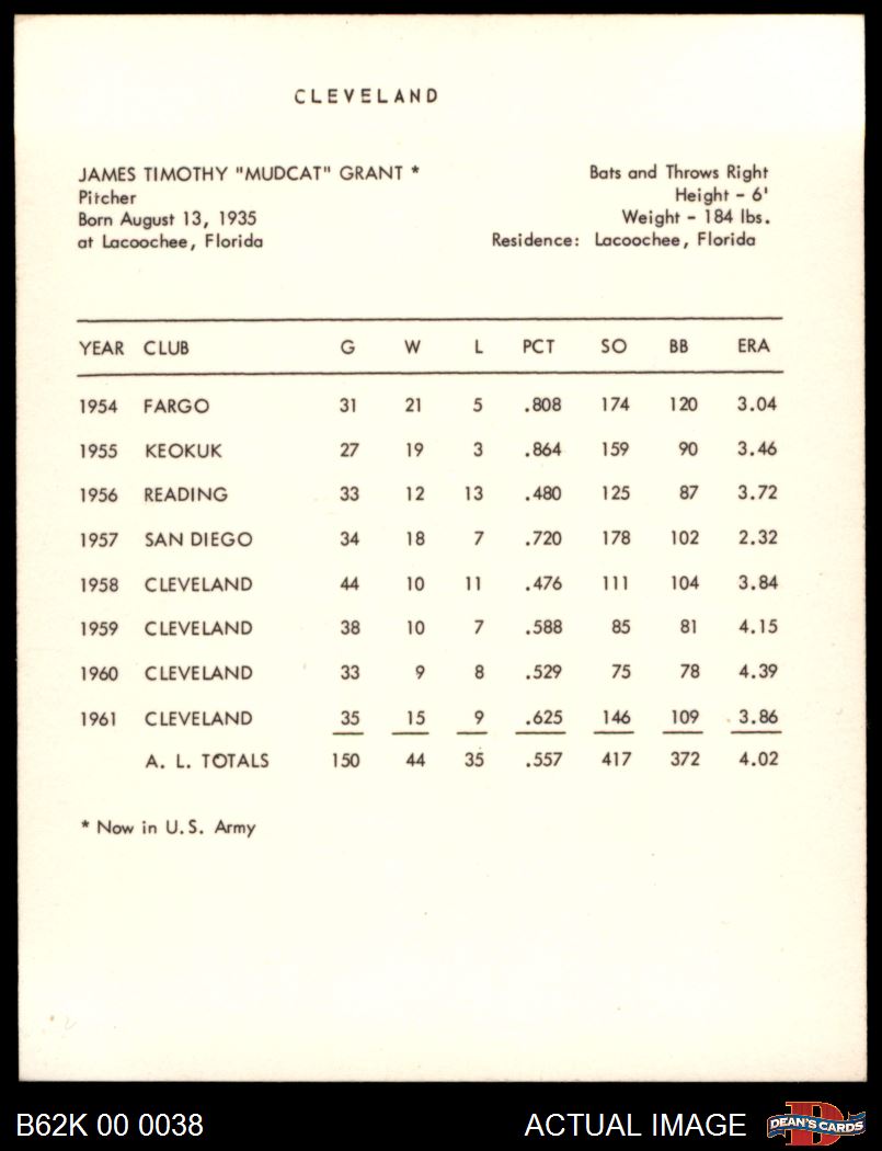1962 Kahn's Jim Grant 8 - NM/MT