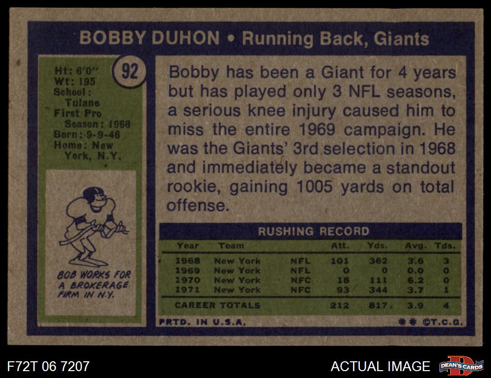 1972 Topps #92 Bobby Duhon 6.5 - EX/MT+