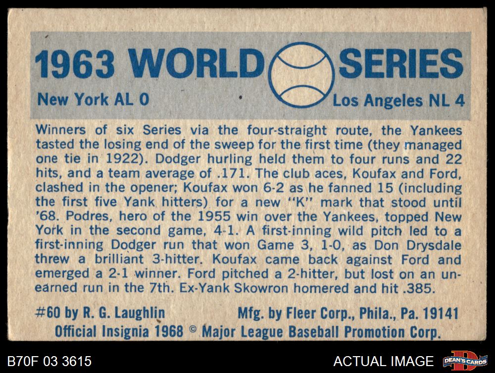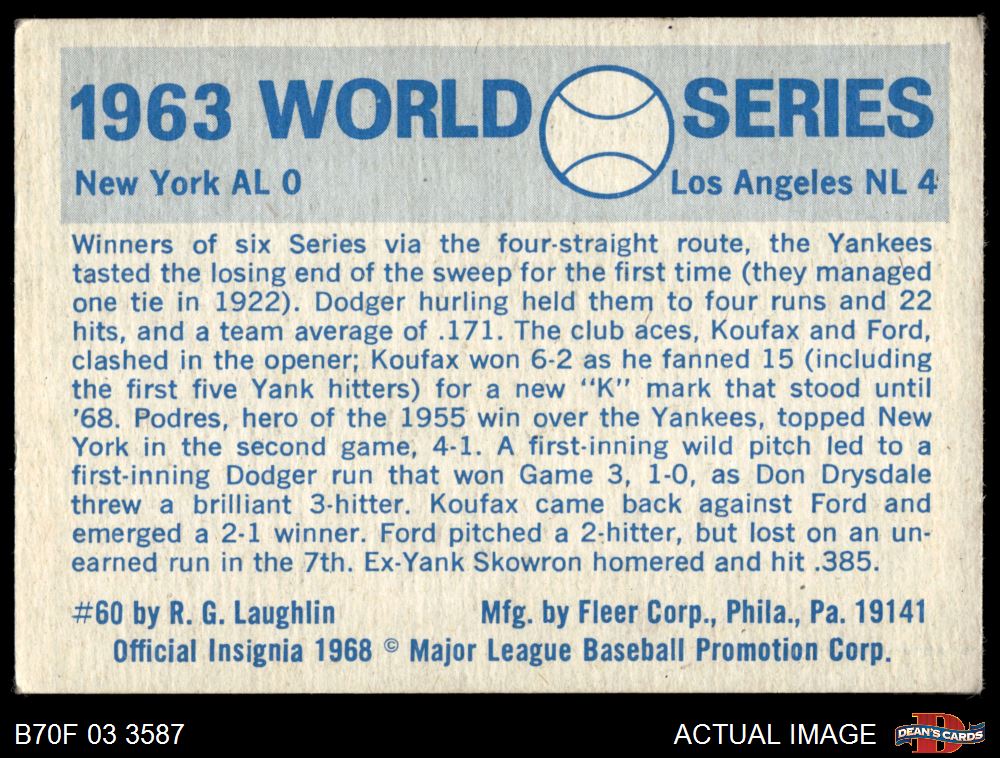 1970 Fleer World Series #60 1963 Dodgers vs. Yankees