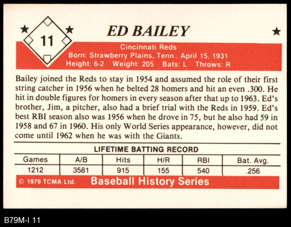 1979 TCMA The 1950's #11 Ed Bailey