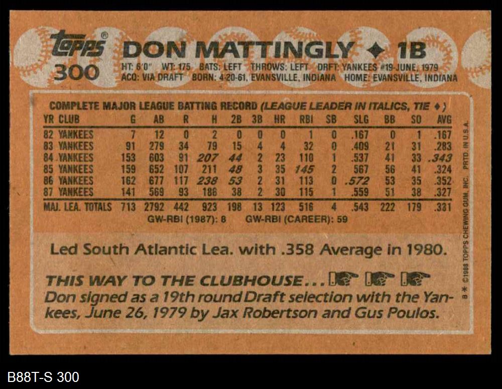 1988 Topps #300 Don Mattingly