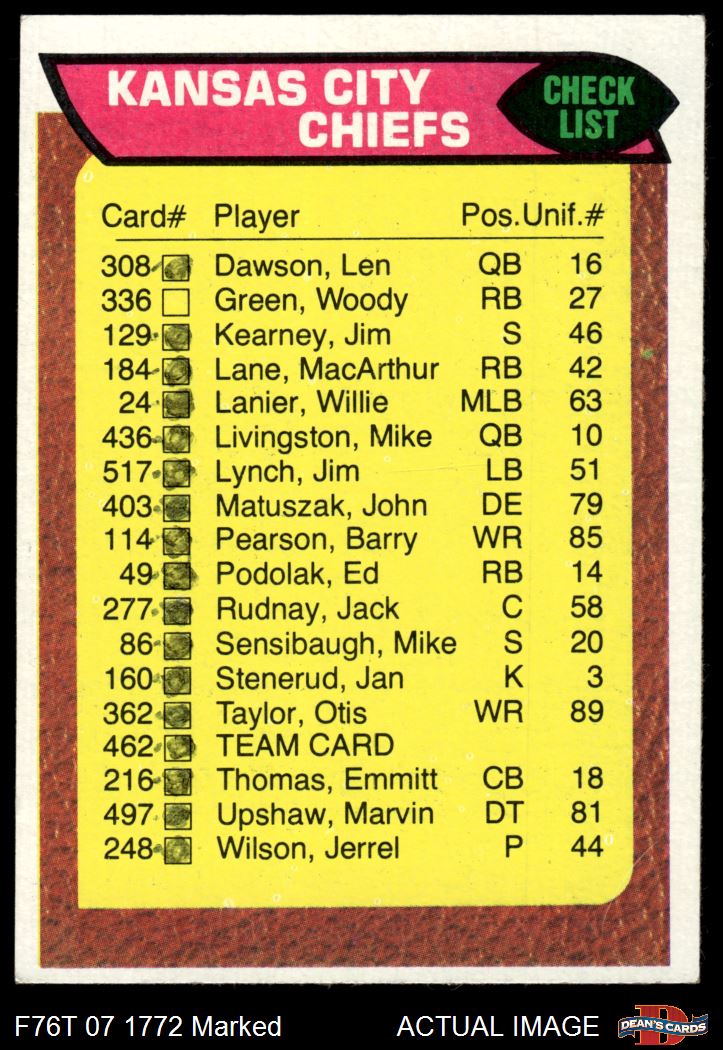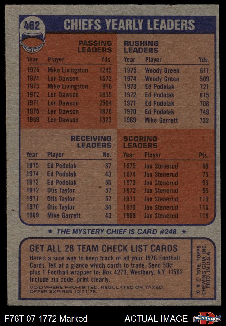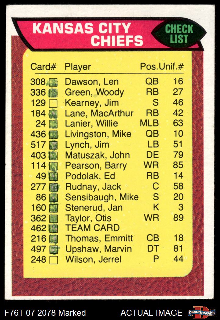 1976 Topps #462  Chiefs Team Checklist Front Thumbnail