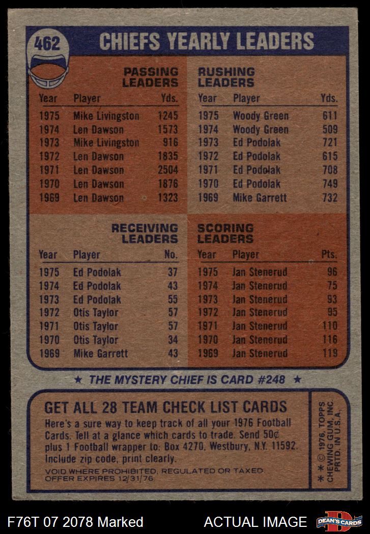 1976 Topps #462 Chiefs Team Checklist 1.5 - FAIR