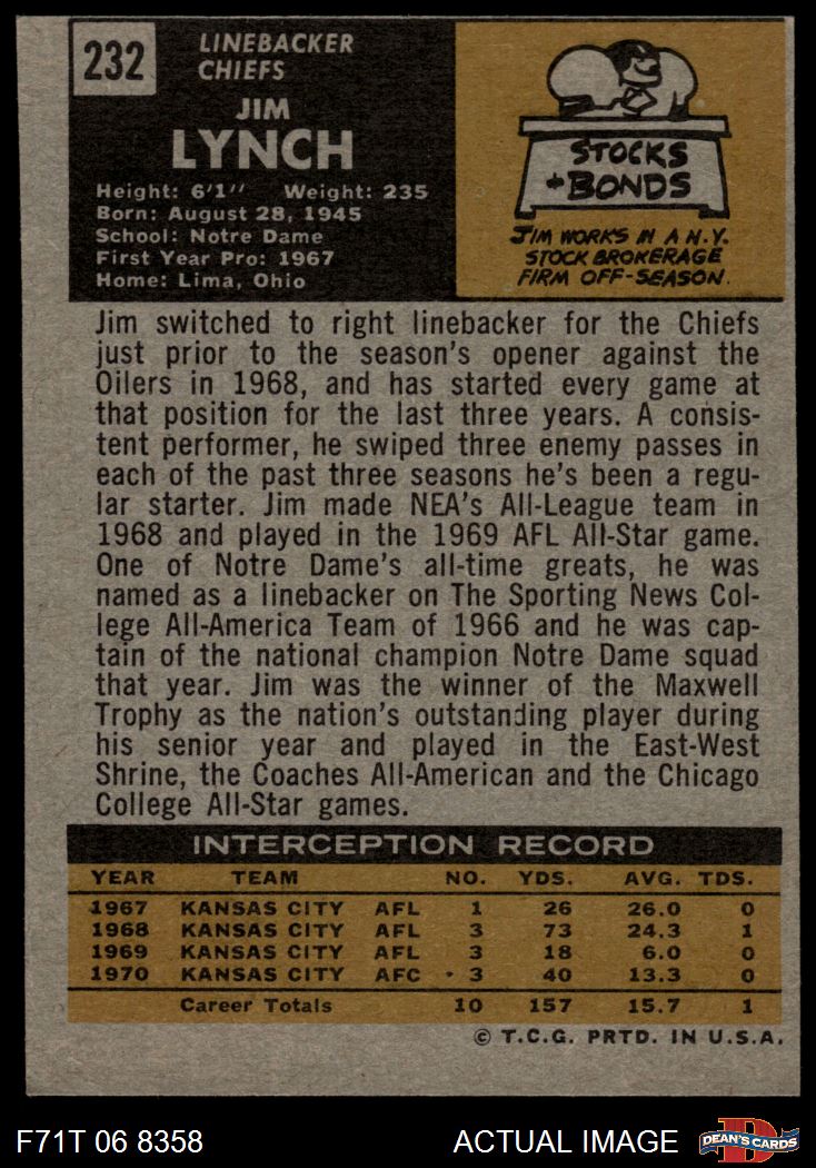1971 Topps #232 Jim Lynch 3 - VG