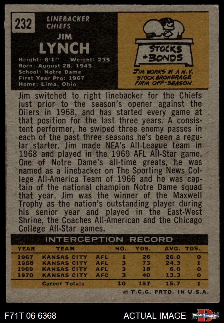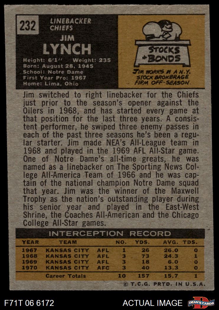 1971 Topps #232 Jim Lynch 5 - EX