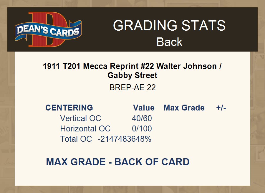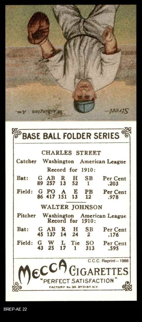 1911 T201 Mecca Reprint #22 Walter Johnson / Gabby Street