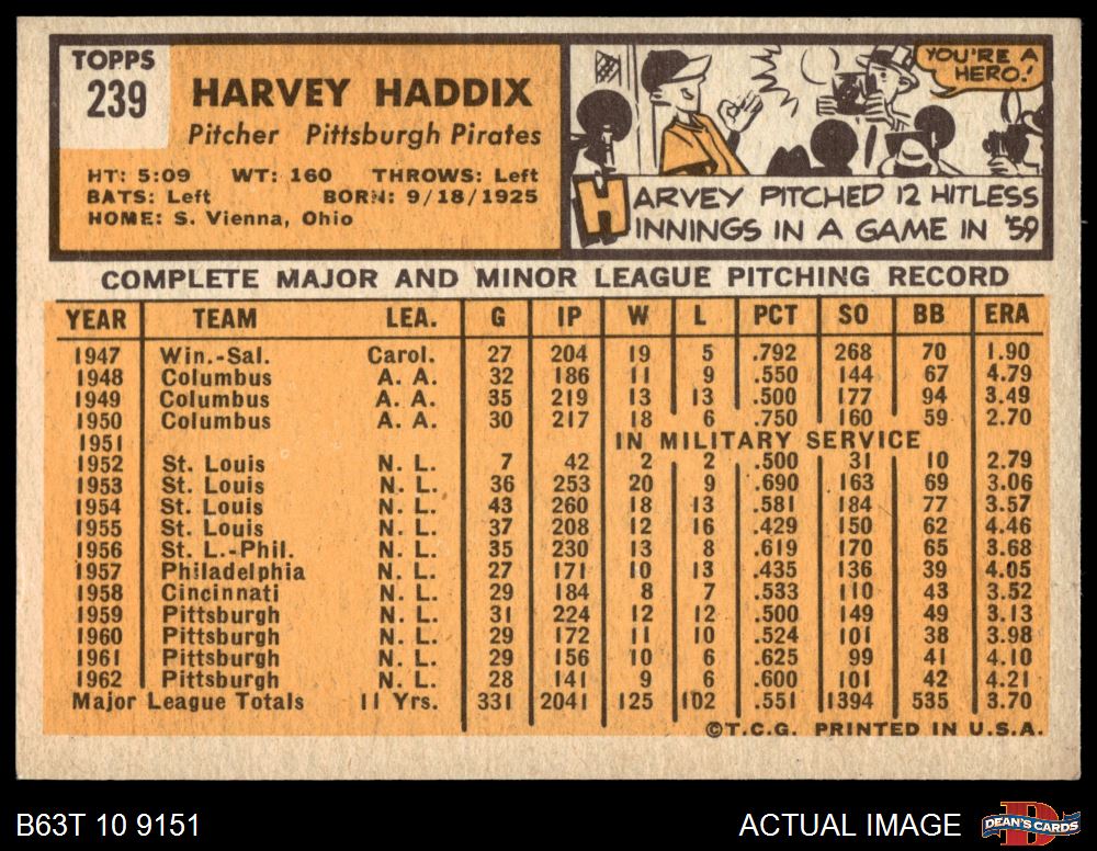 1963 Topps #239 Harvey Haddix
