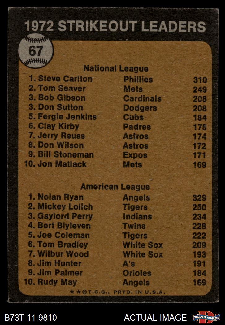 1973 Topps #67 - Steve Carlton / Nolan Ryan Strikeout Leaders 4.5 - VG/EX+