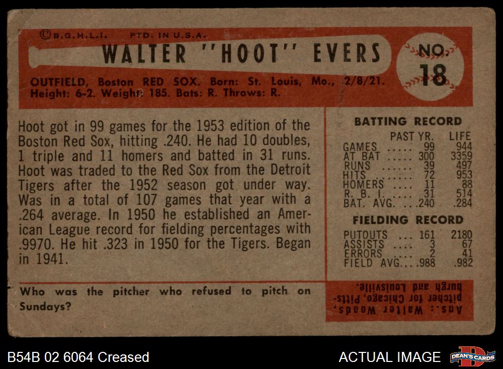 1954 Bowman #18 Hoot Evers 2 - GOOD