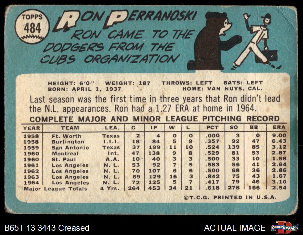 1965 Topps #484 Ron Perranoski 1 - POOR
