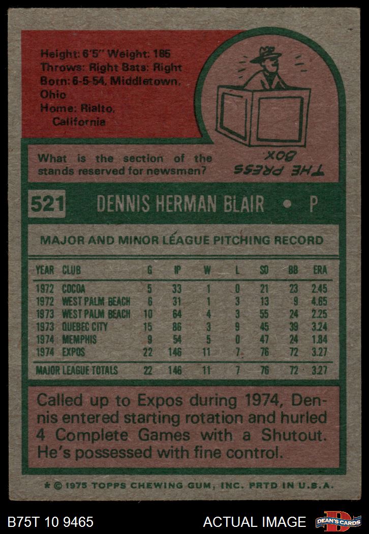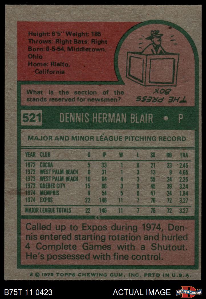 1975 Topps #521 Dennis Blair 4 - VG/EX