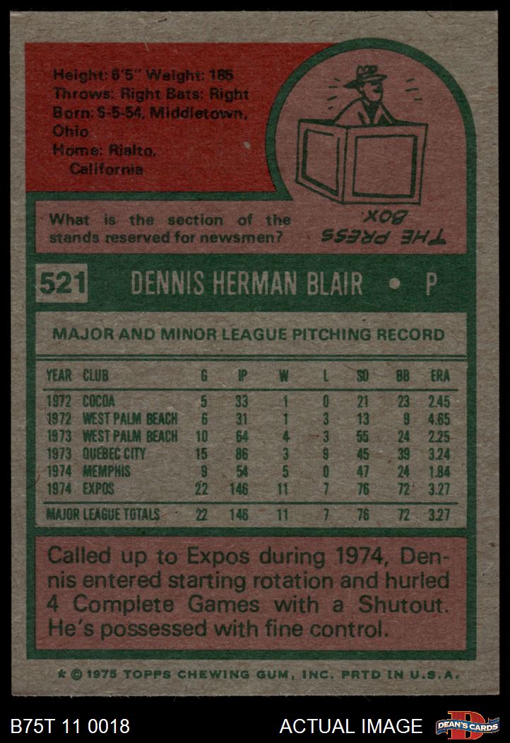 1975 Topps #521 Dennis Blair 6 - EX/MT