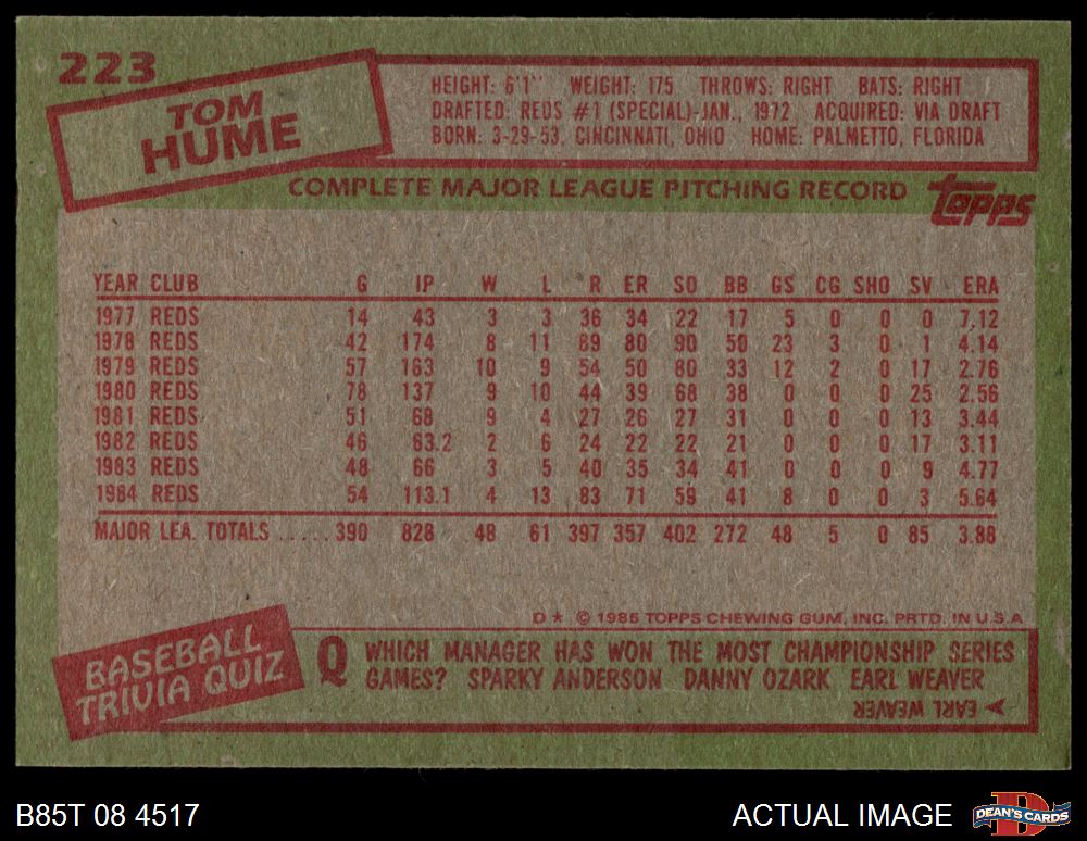 1985 Topps #223 Tom Hume 8 - NM/MT