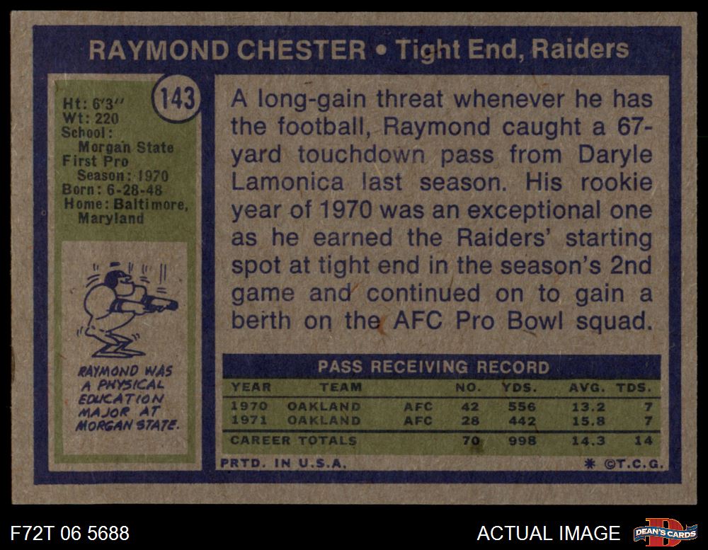 1972 Topps #143 Raymond Chester 8 - NM/MT