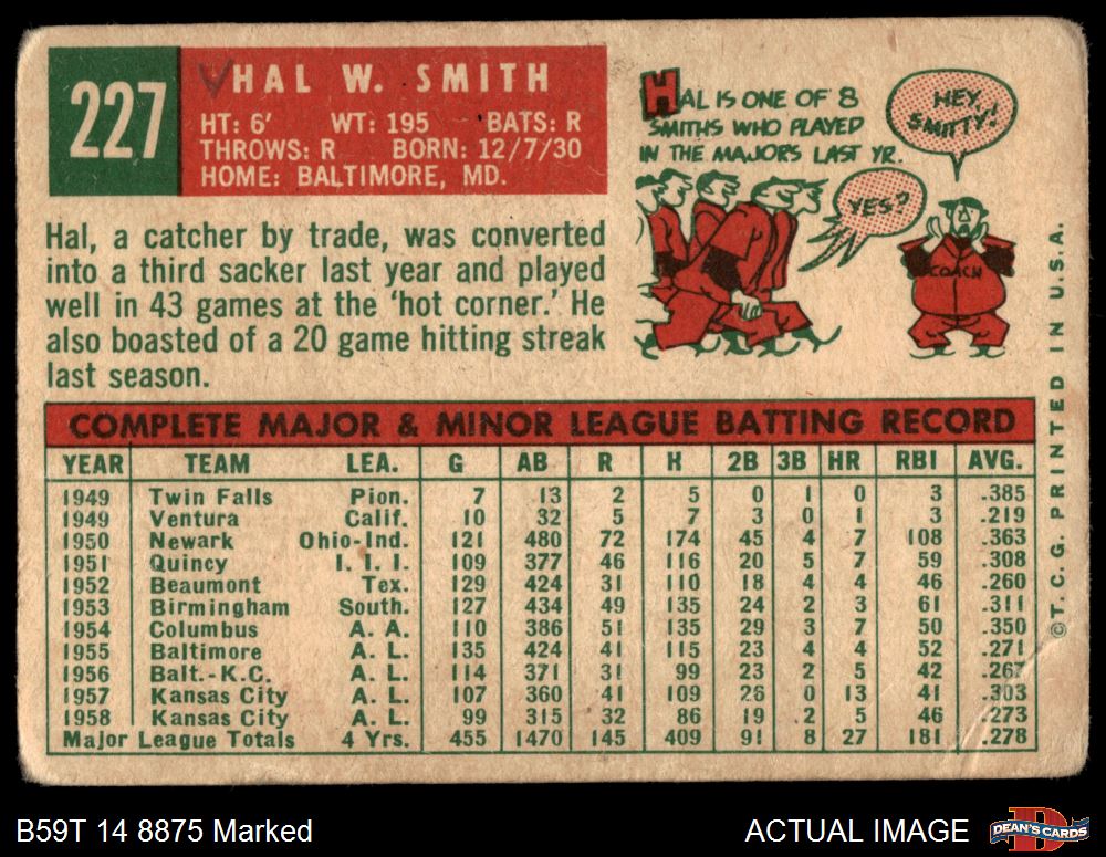1959 Topps #227 Hal W. Smith 1 - POOR