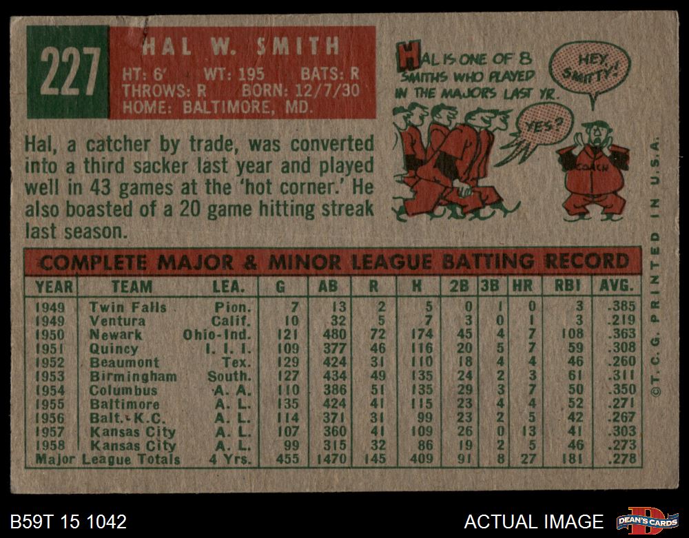1959 Topps #227 Hal W. Smith 1.5 - FAIR