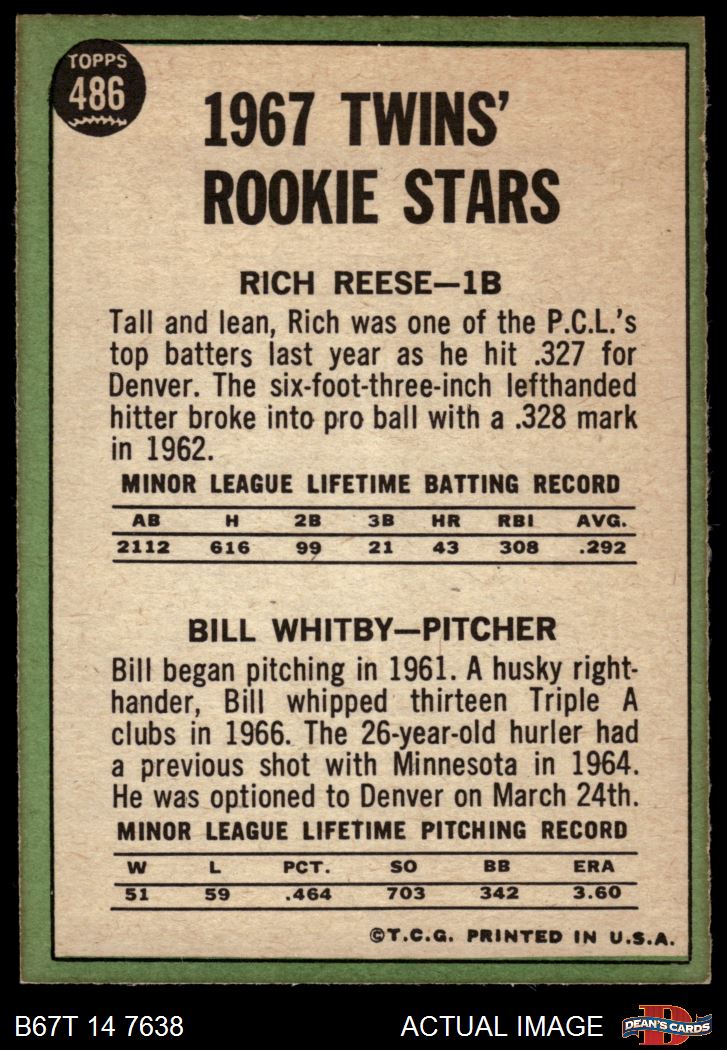 1967 Topps #486 - Rich Reese / Bill Whitby Twins Rookies 6.5 - EX/MT+