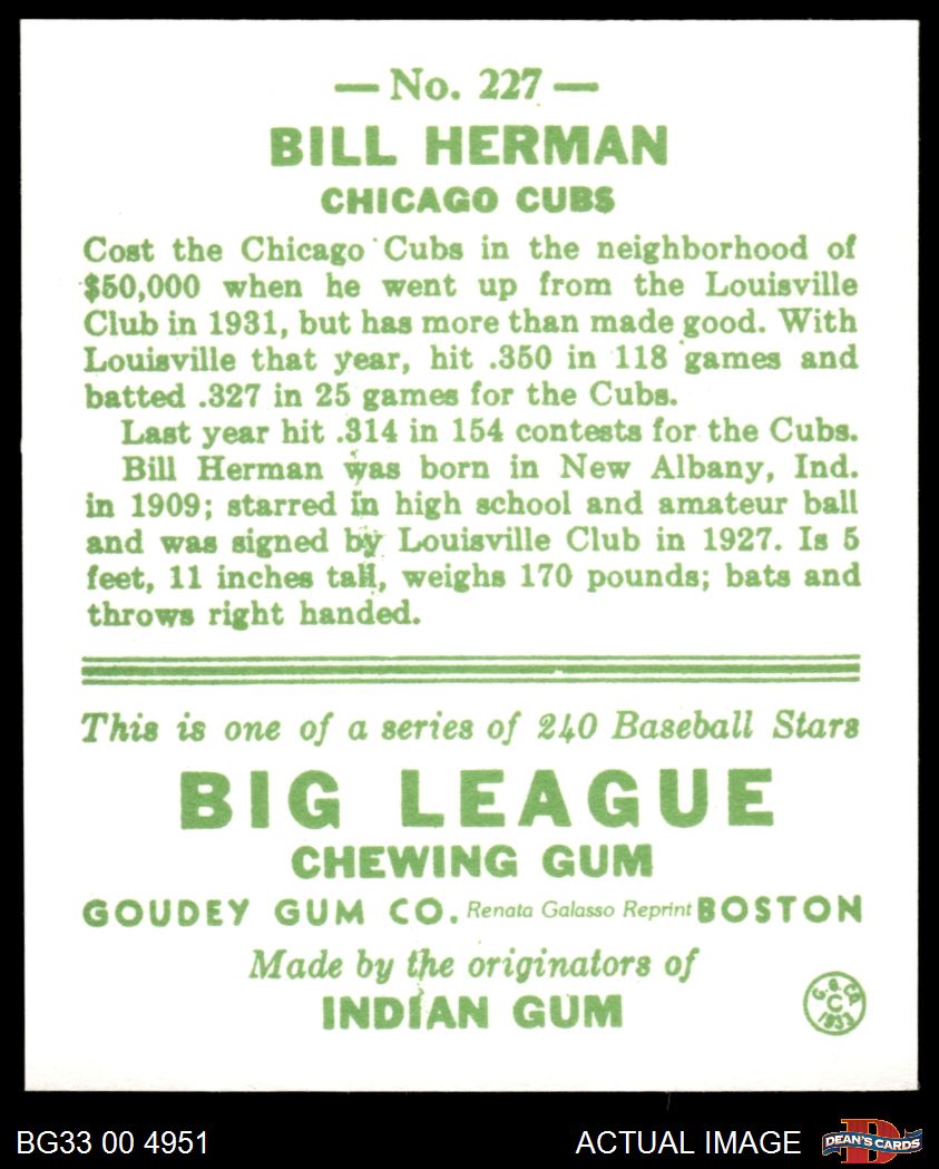 1933 Goudey Reprint #227 Billy Herman 8 - NM/MT