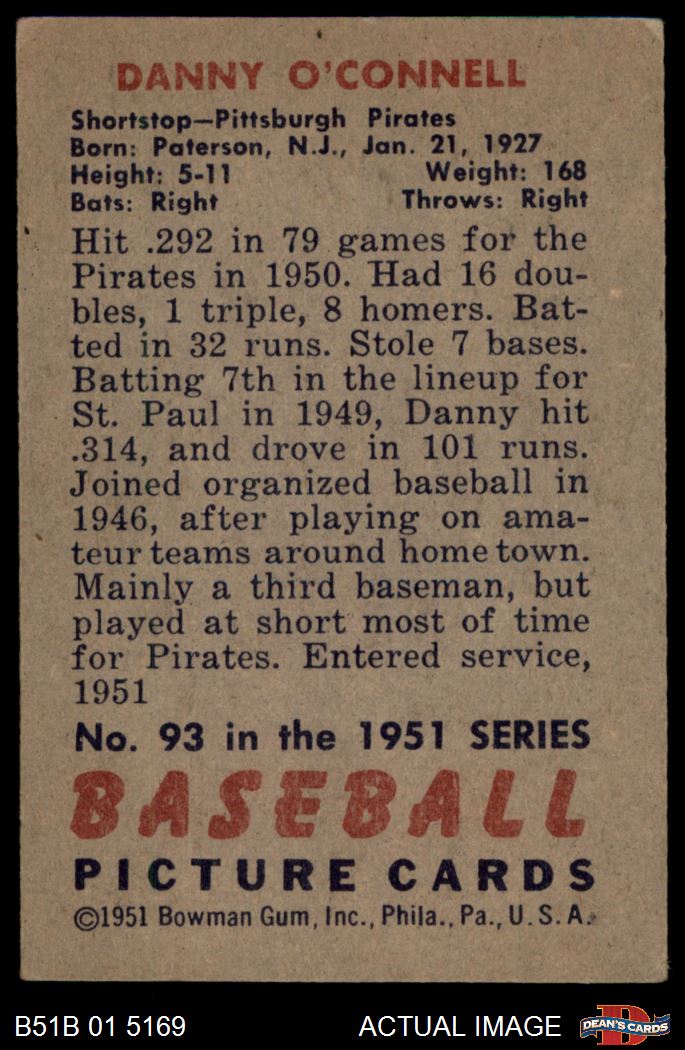 1951 Bowman #93 Danny O'Connell 2 - GOOD