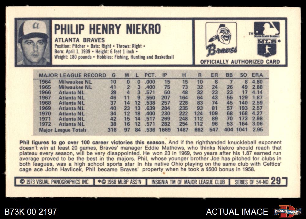 1973 Kellogg's #29 Phil Niekro Front Thumbnail