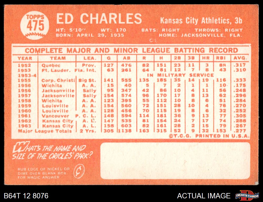 1964 Topps #475 Ed Charles 3.5 - VG+