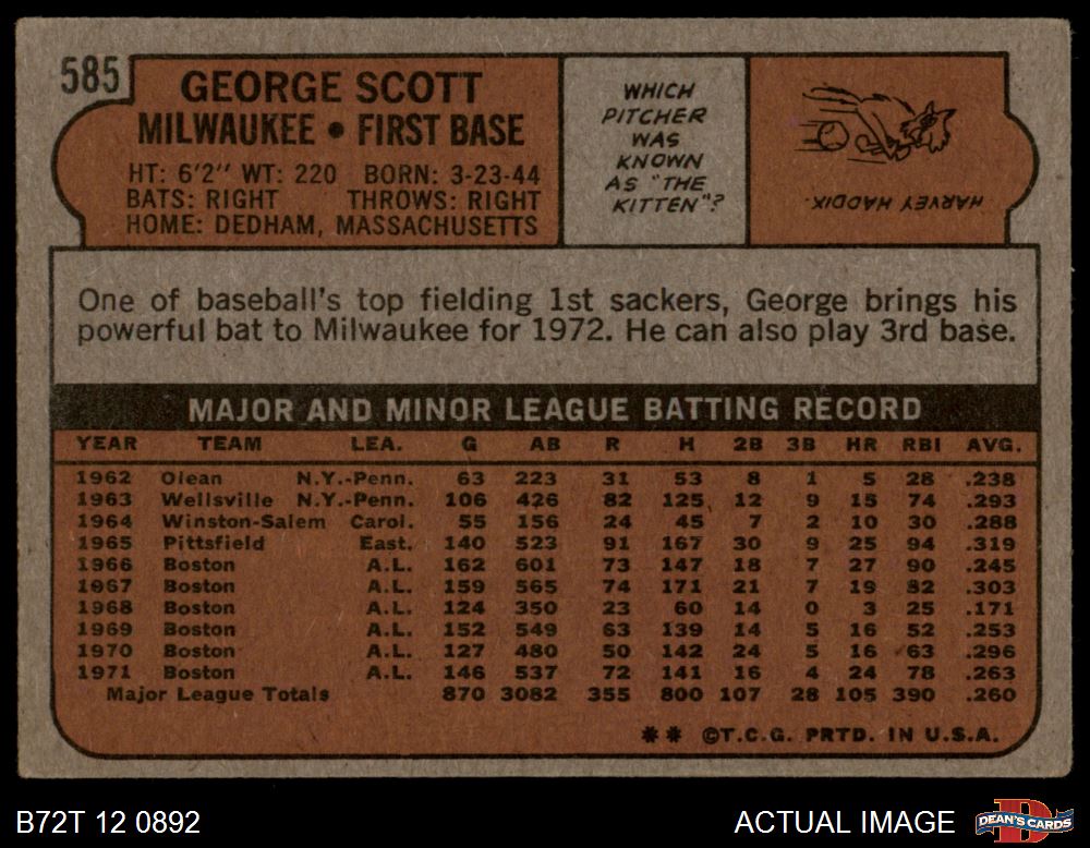 1972 Topps #585 George Scott 2 - GOOD