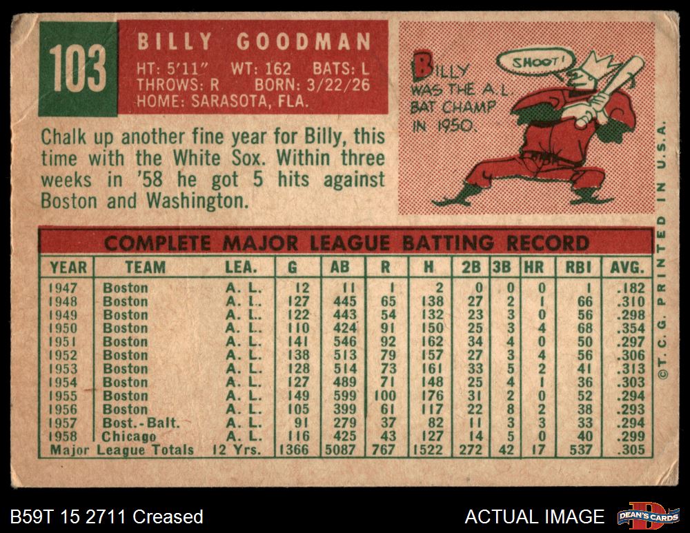 1959 Topps #103 Billy Goodman 1.5 - FAIR