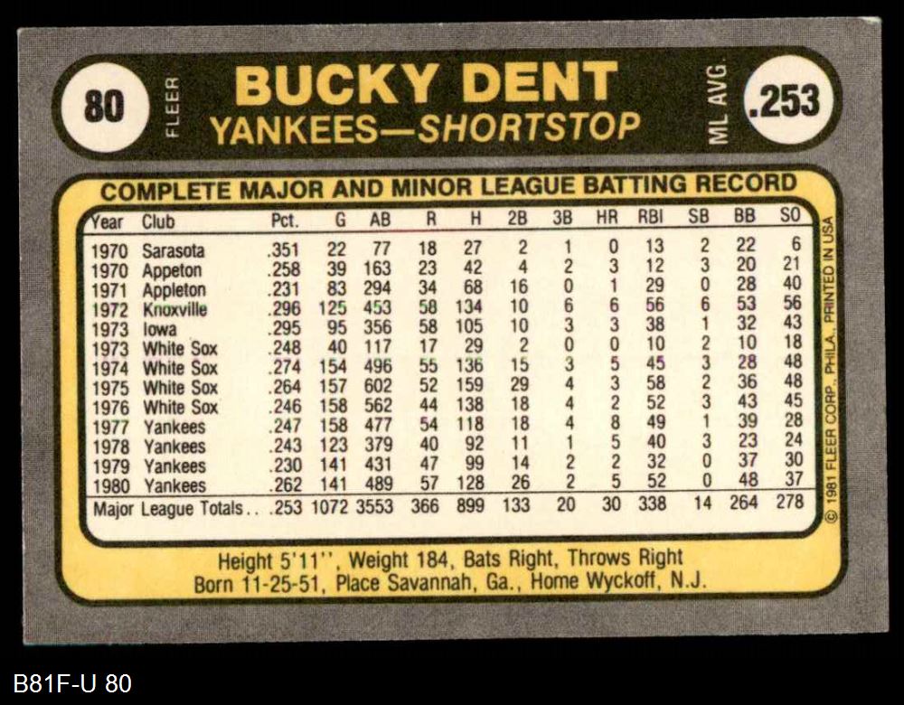 1981 Fleer Baseball Cards (4,030 available)1981 Fleer Yankees (154 available)