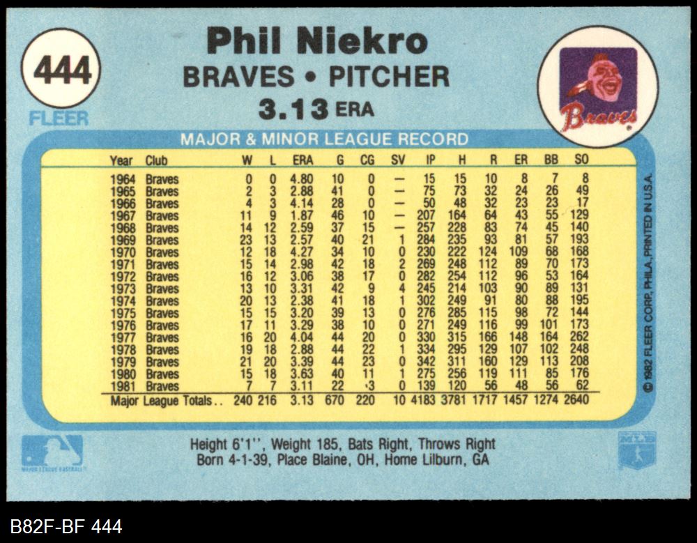 1982 Fleer #444 Phil Niekro 8 - NM/MT