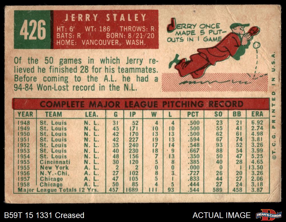 1959 Topps #426 Jerry Staley 2 - GOOD