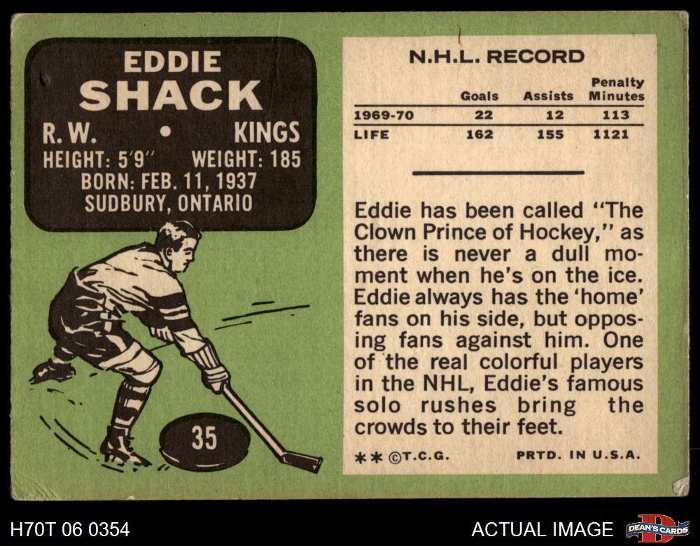 1970 Topps #35 Eddie Shack 2 - GOOD
