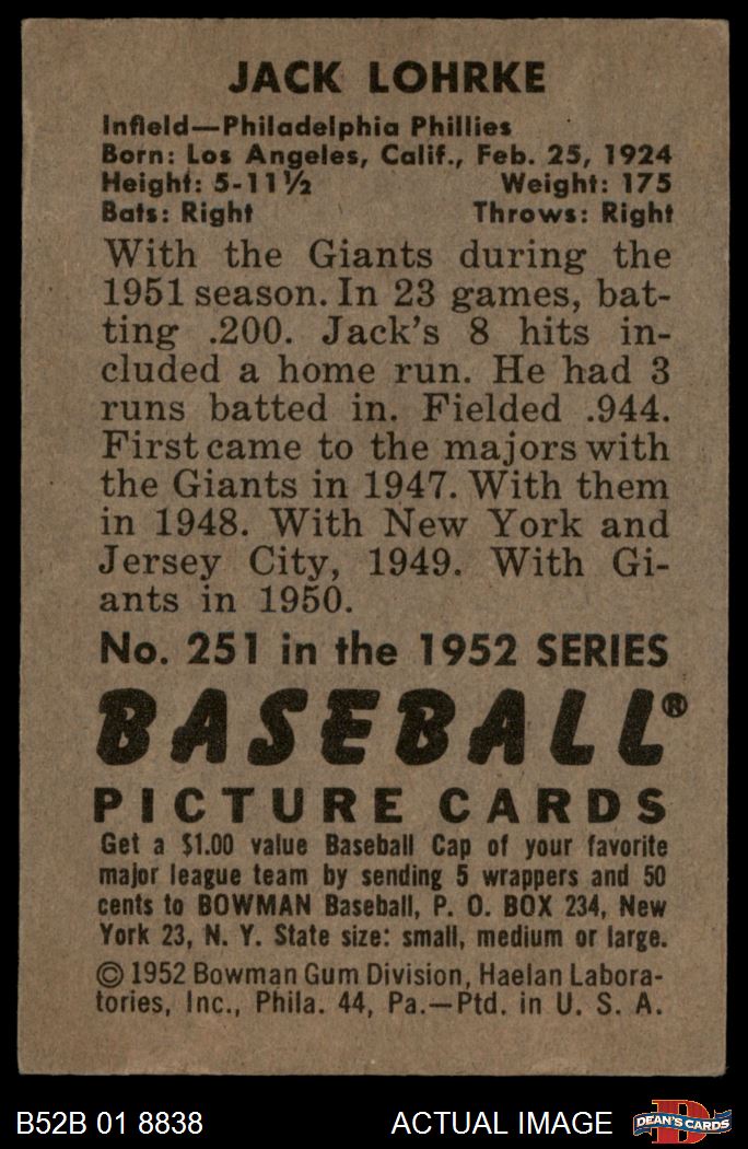 1952 Bowman #251 Jack Lohrke 5 - EX