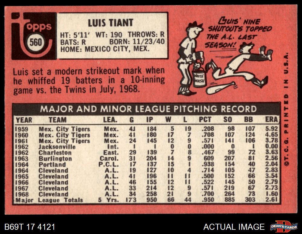 1969 Topps #560 Luis Tiant 7.5 - NM+