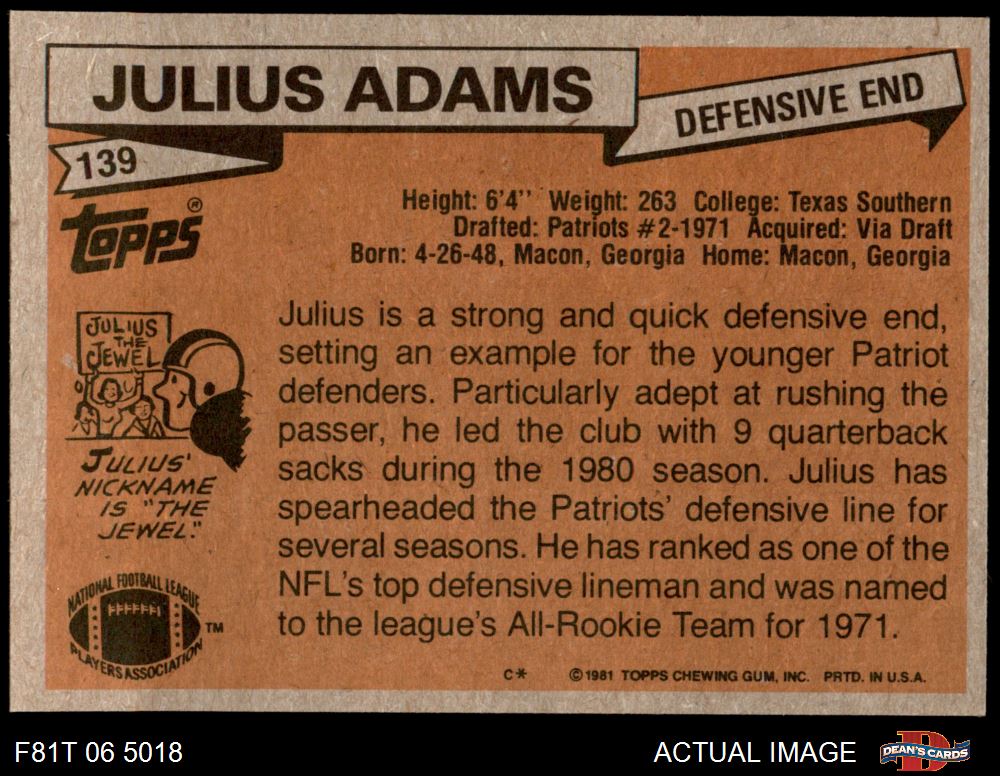 1981 Topps #139 Julius Adams 8 - NM/MT