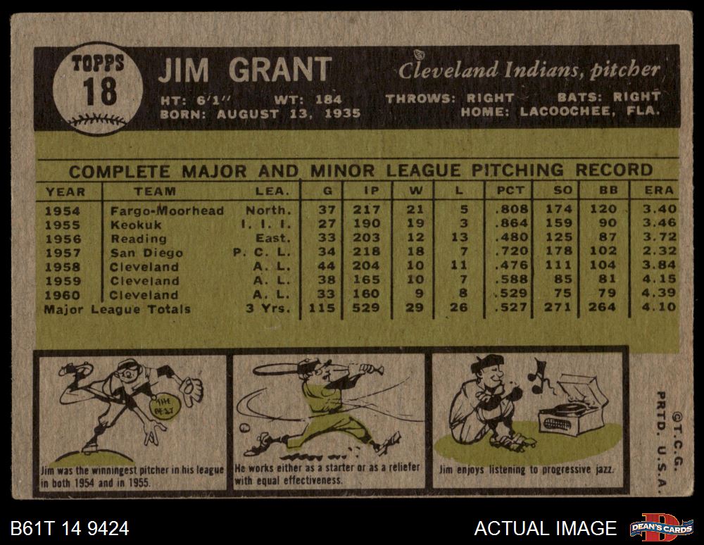 1961 Topps #18 Jim Grant