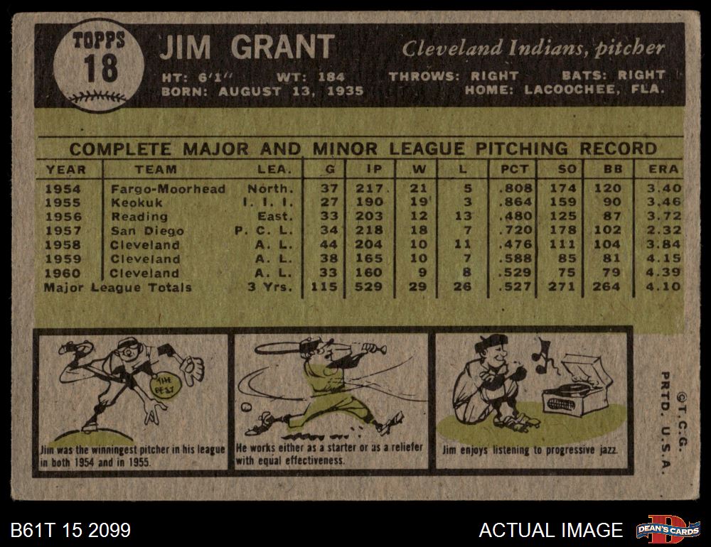 1961 Topps #18 Jim Grant 3.5 - VG+