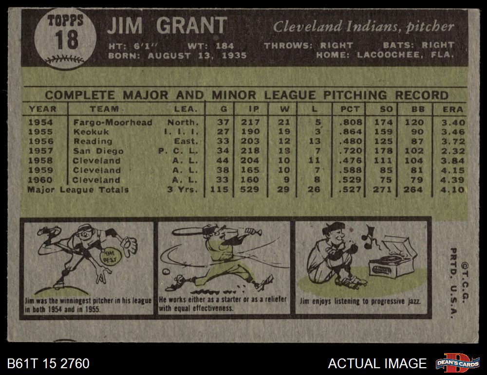 1961 Topps #18 Jim Grant 5.5 - EX+