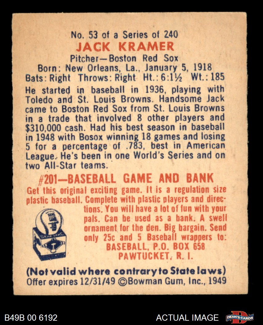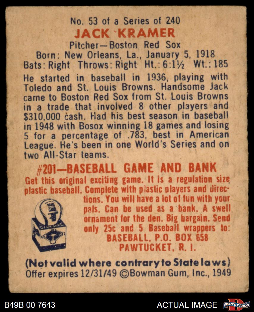 1949 Bowman Baseball Cards (707 available)1949 Bowman Red Sox (89 available)