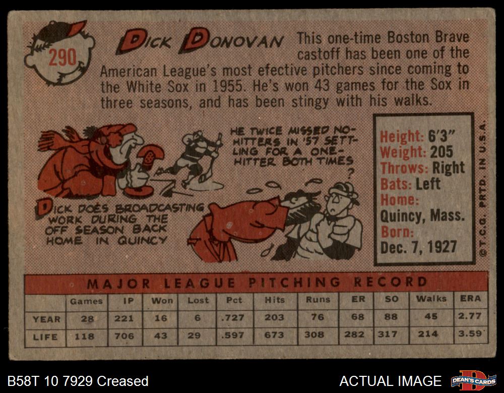 1958 Topps #290 Dick Donovan 2 - GOOD