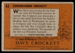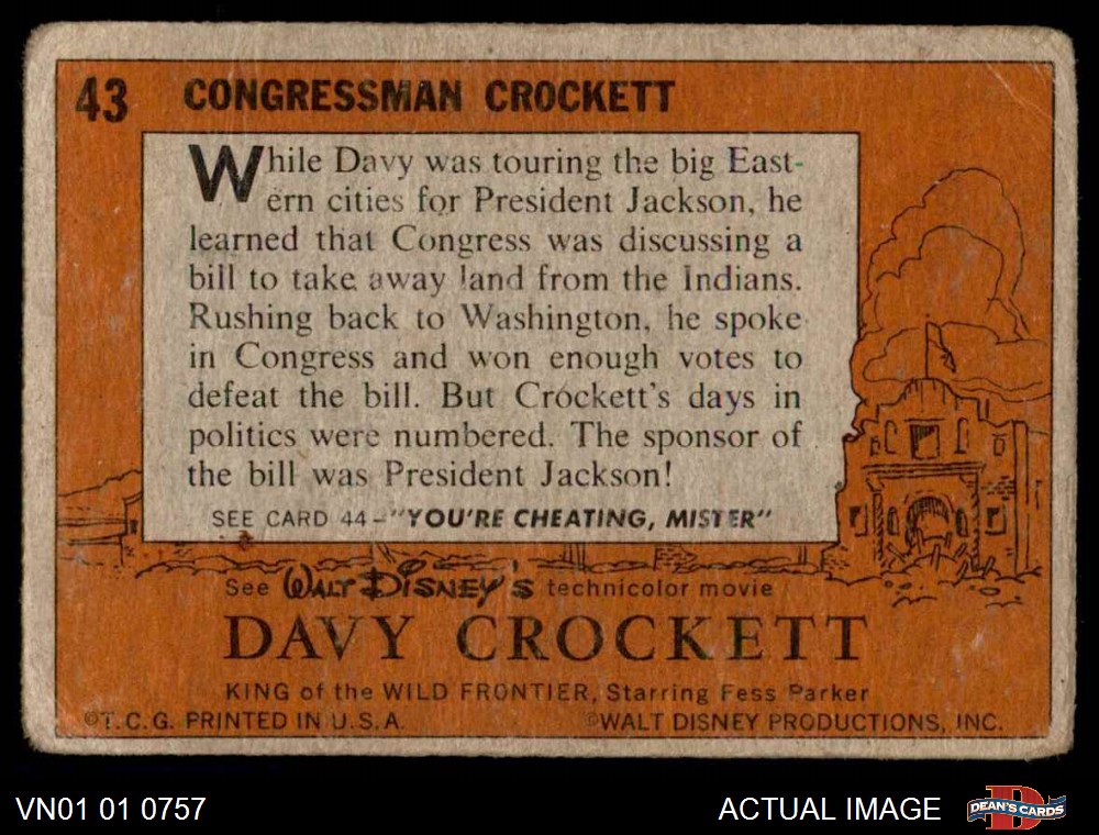 1956 Topps Davy Crockett Orange Back #43 Congressman Crockett