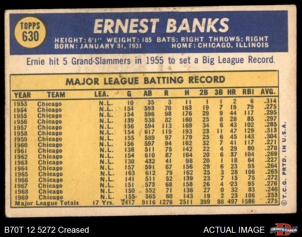 1970 Topps #630 Ernie Banks 3 - VG